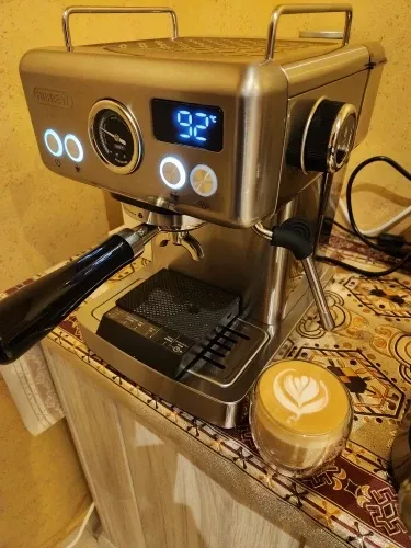 I've always been a coffee enthusiast, but this machine has taken my love for the beverage to an entirely new level. The semi-automatic feature is truly impressive - it's like having your own personal barista at home! But what really sets this product apart from others in the market its adjustable temperature setting. It's such a simple yet innovative feature that makes all the difference when brewing espresso. I can now tailor each cup according to my preference or mood of the day - whether I want it piping hot on chilly mornings or slightly cooler during warmer days. Plus, it ensures that every shot tastes exactly as it should - no more burnt or lukewarm coffees for me! This device is not just user-friendly and efficient, but also fun to use. Making coffee has become less of a chore and more of an enjoyable experience thanks to this gadget. Overall, I'm beyond thrilled with my purchase and would highly recommend this espresso machine!