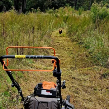 This mower is the BEST ever!! I have 22 acres, 8 of which are not wooded and I don't have a tractor or bush-hog. I pay to have it cleared once a year. But now I wanted to walk my dogs out and decided to clear some paths through the tall grass and weeds with this mower, whom I named Mathilda (after a strong woman). I use her to mow the 1.5 acres of fenced areas without issues, her "turtle speed" is perfect for me (50 years old, 5'1" with plantar foot issues). She'll go a bit faster, but it's not that big of a difference. Today I tried her out in the overgrown field and I am STUNNED!!!! She barreled through it all!!! Super tall grass, weeds, small trees, you name it. I'll never consider another brand again.