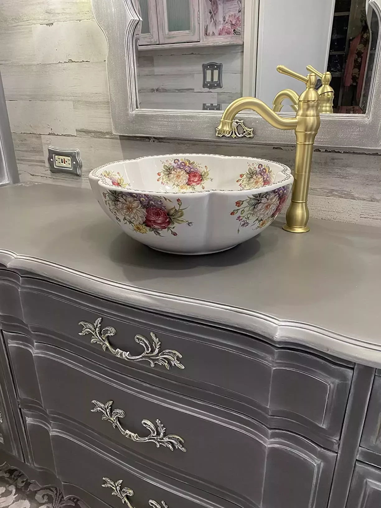 The combination of traditional craftsmanship and modern design makes this ceramic vessel sink truly unique. Each sink is hand-painted, ensuring that no two are exactly alike. The high-temperature firing process enhances the sink’s durability, making it resistant to wear and tear. Its elegant floral design adds a touch of sophistication to any space, making it not just a sink, but a focal point in your bathroom decor.