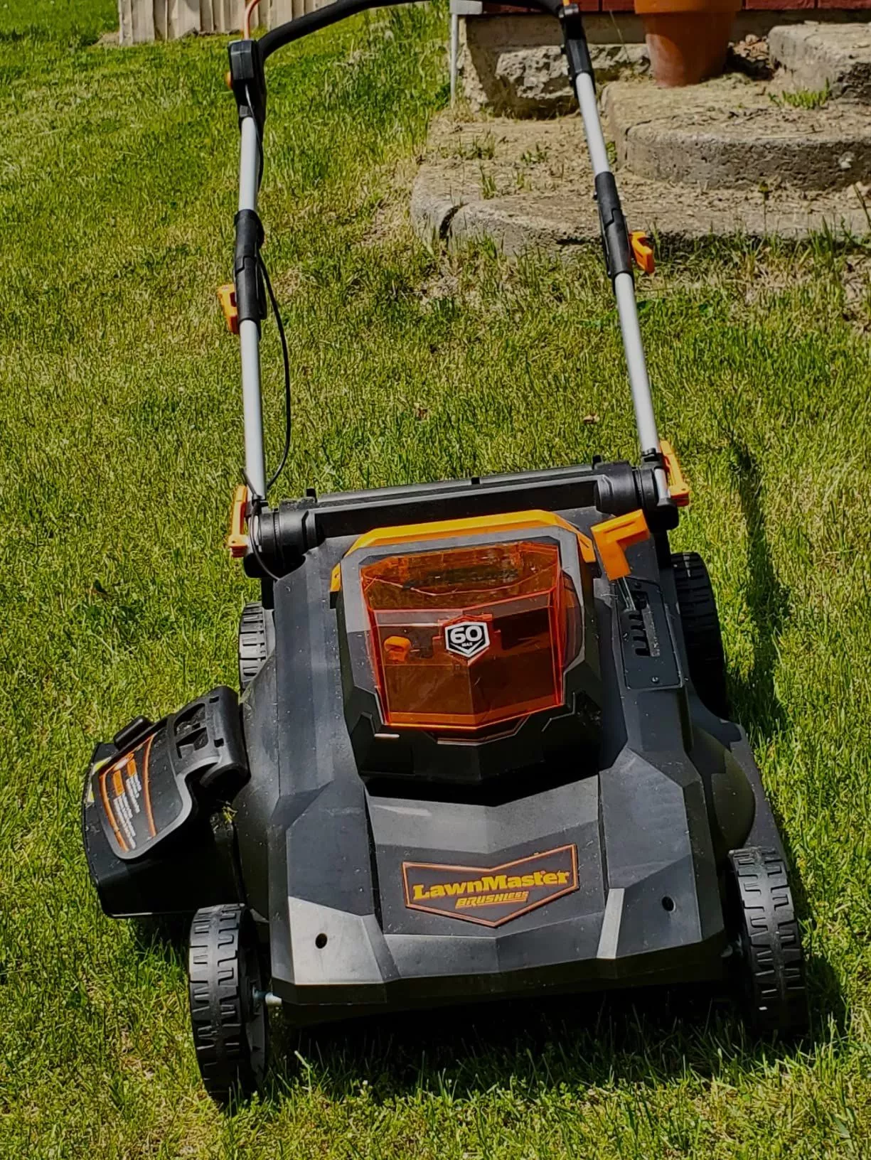 Man, let me tell you! This thing is an absolute monster! I mean, it's got this 60V battery that just does not quit. You know how some yards have that super thick grass? The kind of stuff that would bog down a regular mower and make it choke? Yeah, well this beast laughs in the face of such challenges. It eats through my lawn like a hot knife through butter. Doesn't even break a sweat doing it either. It's like giving the Hulk a pair of scissors and telling him to go trim some hedges - overkill in the best possible way. And don't get me started on its fast charger. Oh boy, what an absolute game changer! You know how with other mowers you're always left twiddling your thumbs waiting for them to juice up so you can finish off those last few strips of grass? Well kiss those days goodbye because this bad boy charges faster than Usain Bolt outta the starting blocks. There's no more hanging around wasting precious time while your mower takes its sweet time charging up again. Nope, with this beastly machine there's barely any downtime at all. Plug it in for a bit and boom – back in action before you've had time to crack open another cold one! So yeah, if anyone asks me about my new powerhouse tool for taming my wild backyard jungle...I'd say grab yourself one pronto mate! It’s as reliable as they come; never leaves ya high and dry halfway through tackling your yard work.
