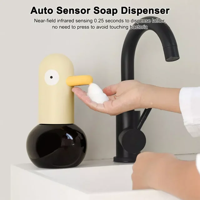 Add a fun, practical touch to your handwashing routine with this cute duck-shaped automatic foaming soap dispenser. Designed for hands-free convenience, it’s perfect for keeping your bathroom or kitchen clean and germ-free with minimal effort. Equipped with advanced infrared sensors, it dispenses foam instantly, making it ideal for busy households or anyone looking to upgrade their hygiene setup. The rechargeable battery ensures long-lasting use, and the IPX4 waterproof rating offers reliable durability even in wet environments.