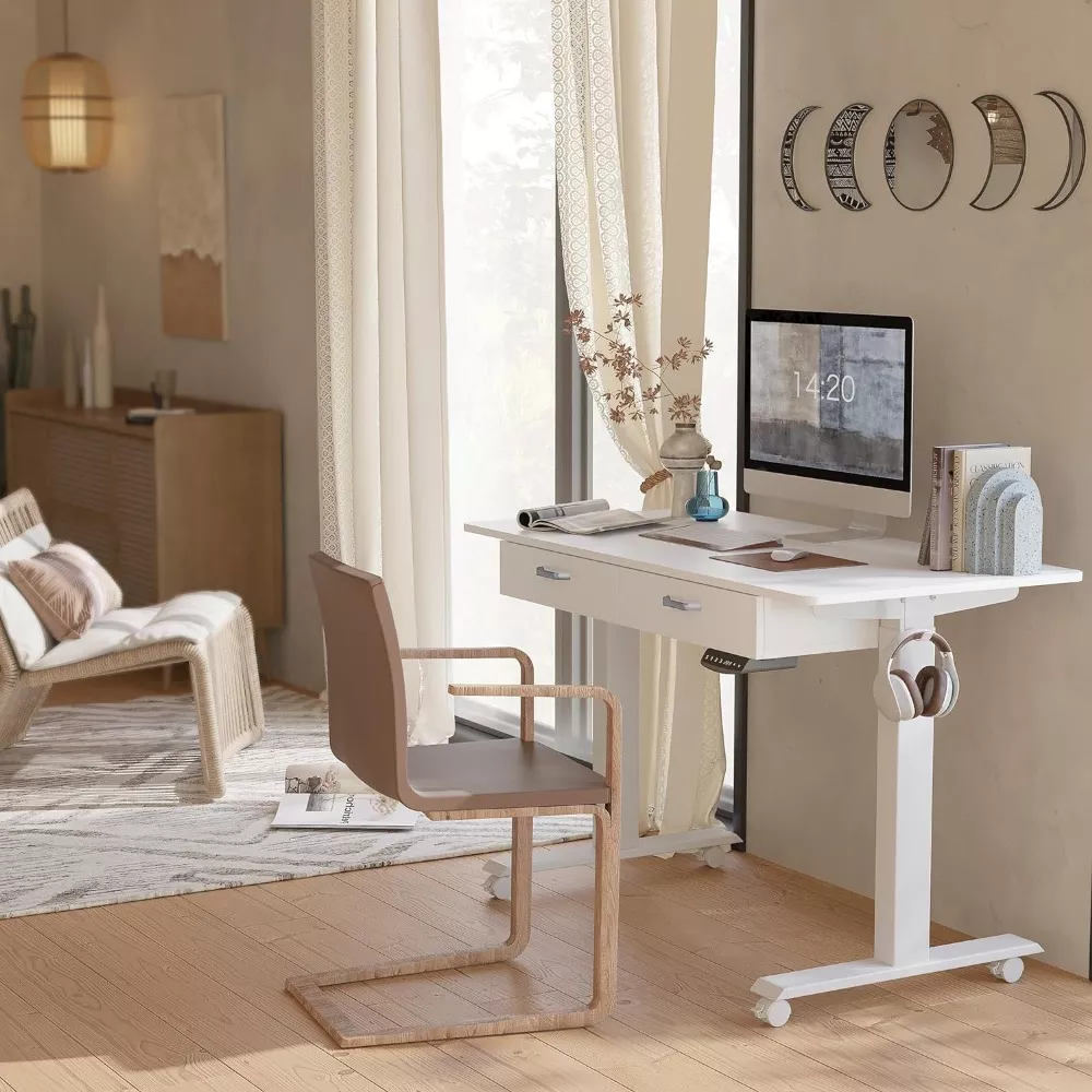 Aside from its robust build and aesthetic appeal, this desk stands out because of its innovative height adjustment feature and dual-drawer storage solution. The ease of movement provided by its lockable casters adds a layer of functionality rare in similar desks, making it an ideal choice for dynamic and modern working environments.