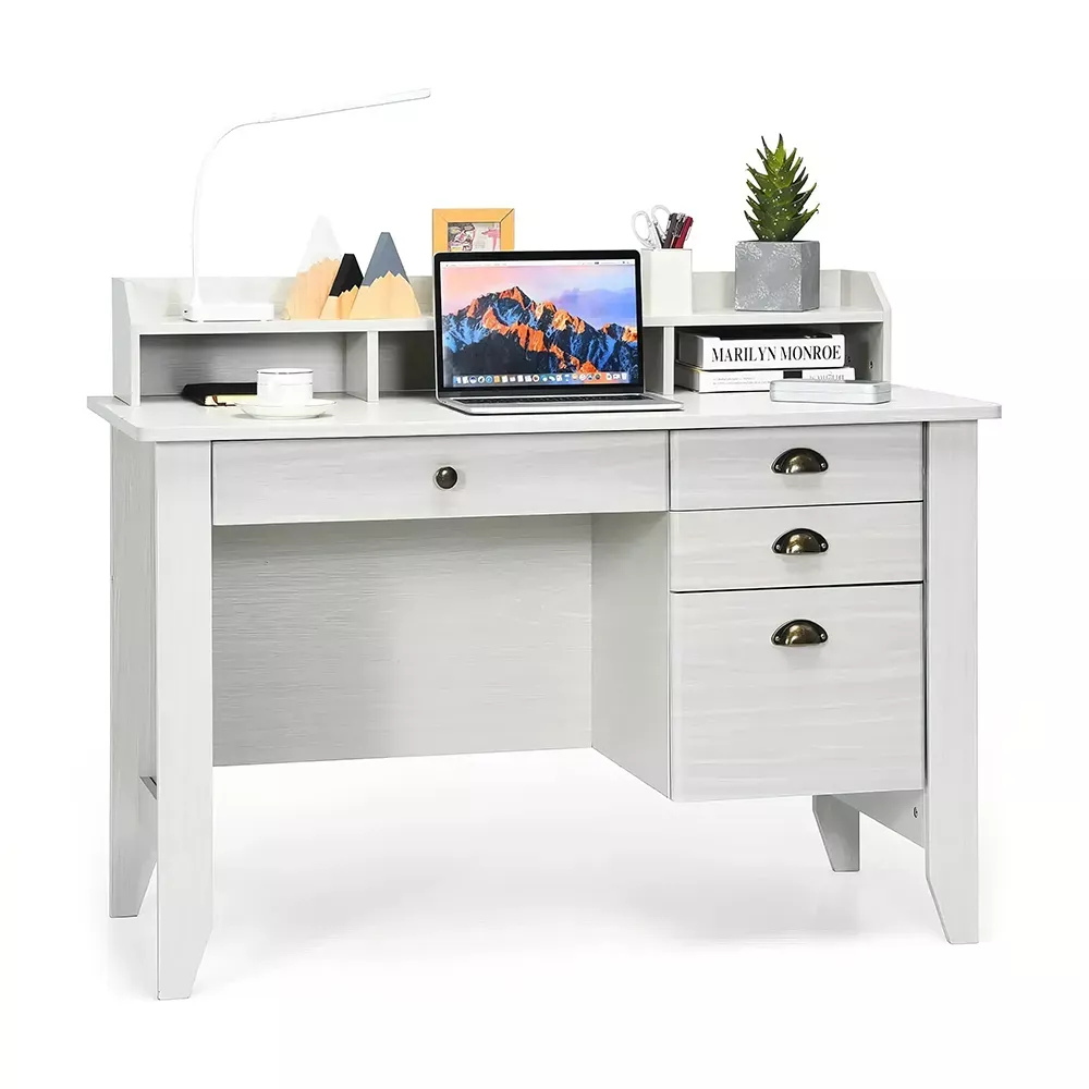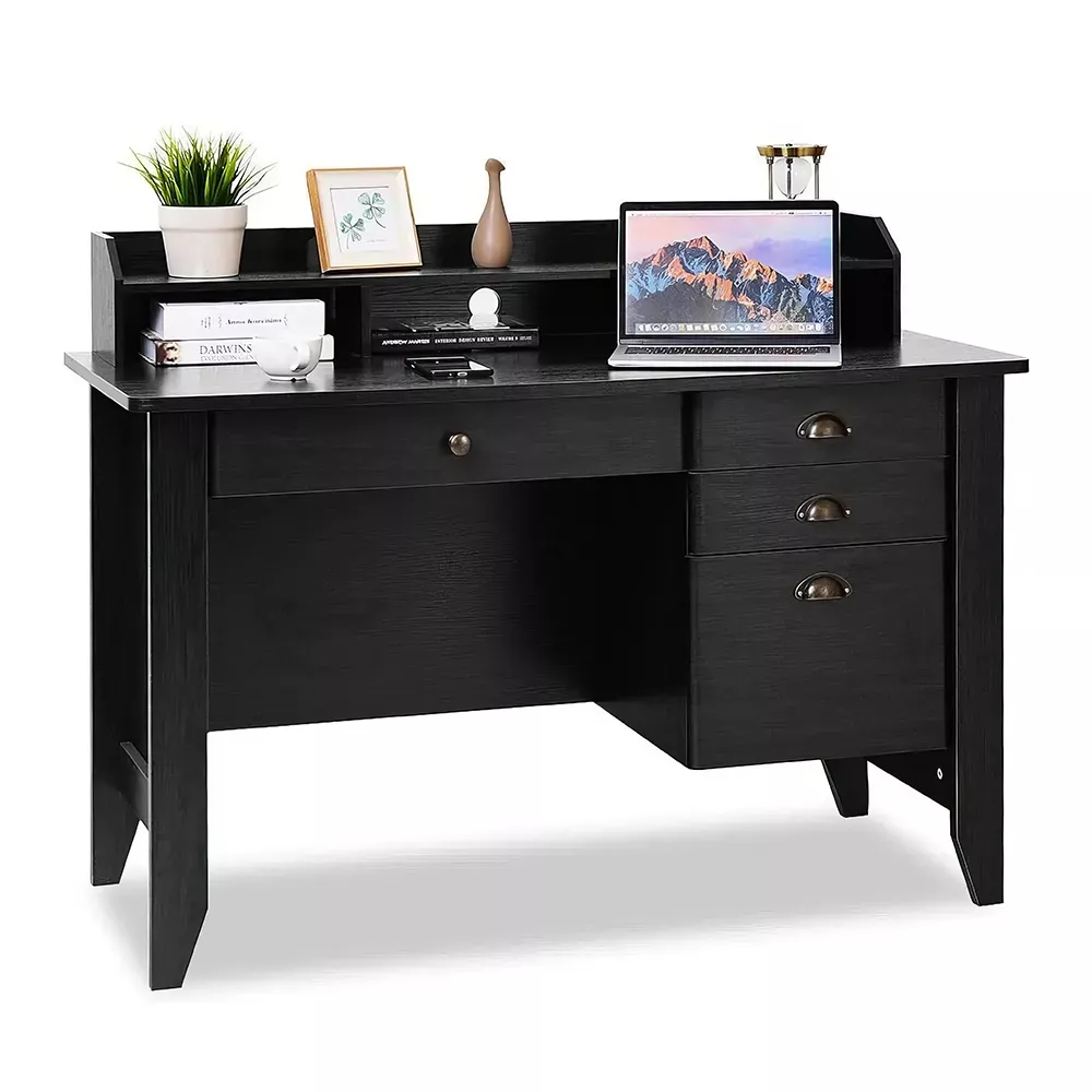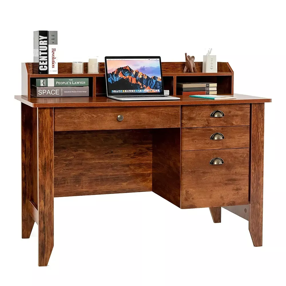 This desk is truly a standout piece! I was on the hunt something that could blend seamlessly into my vintage inspired workspace, yet provide all the modern functionality one would expect from an office desk. And boy, did this deliver! The four-color blend adds such a unique touch and elevates entire room's aesthetic. Plus, it offers ample storage with its shelves and drawers - perfect for keeping my work essentials organized and within reach. It’s not a desk; it has become an integral part of my daily routine making every task more enjoyable.