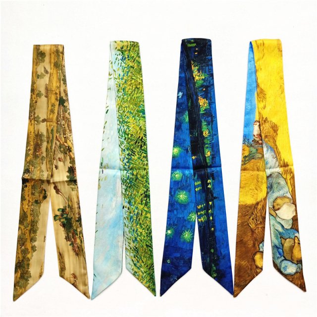 Elevate your look with this Elegant Art-Inspired Silk Skinny Scarf, where timeless art meets modern fashion. Inspired by the masterpieces of Van Gogh and the serene beauty of the Qingming Festival on the River, this scarf captures the essence of creativity, culture, and sophistication. Crafted for women who appreciate elegance and individuality, this scarf turns any outfit into a statement of taste and refinement.