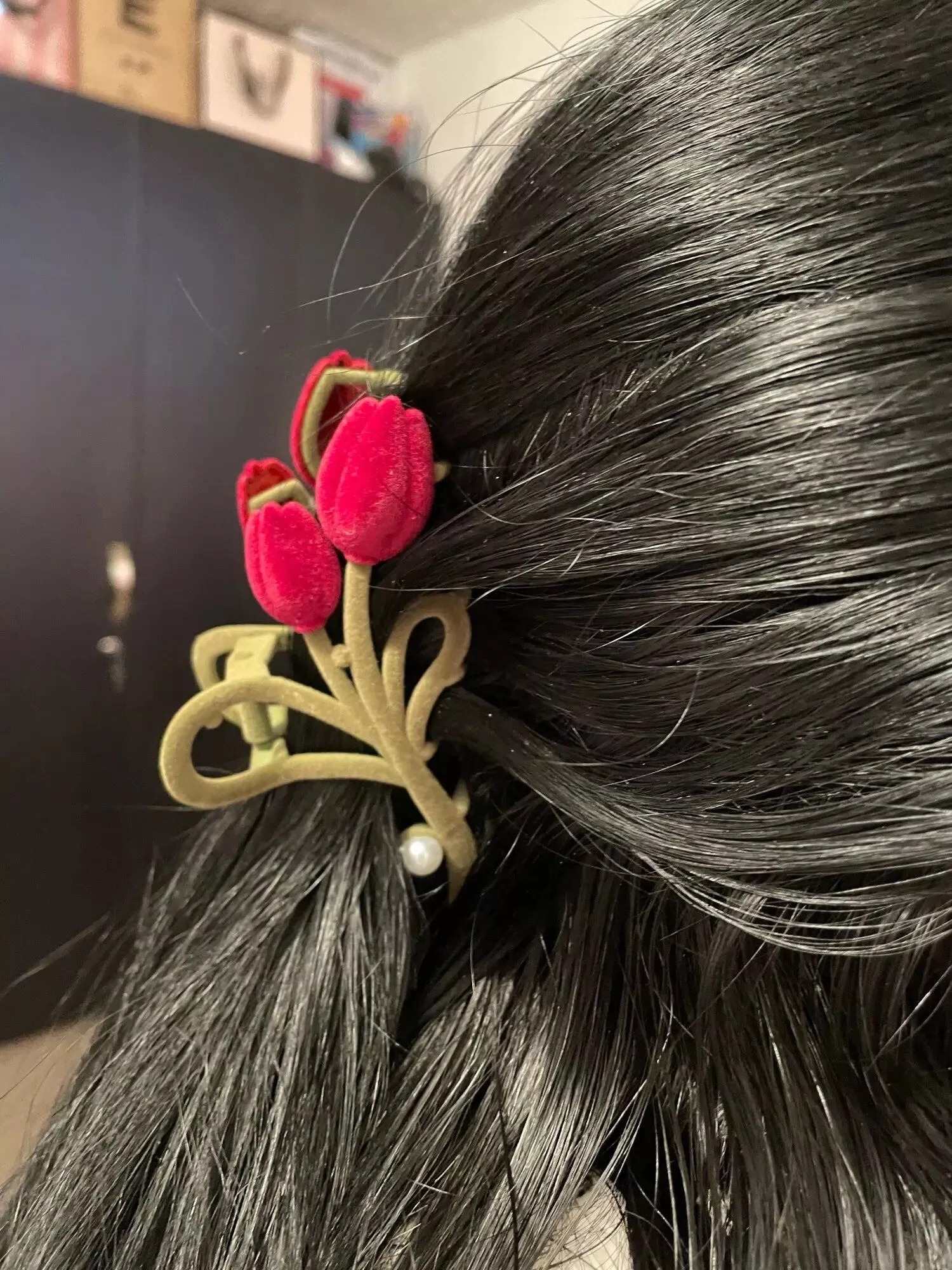 Introducing the ultimate accessory that blends timeless retro allure with contemporary girlish charm – our Elegant Retro Velvet Tulip Hair Clip with Pearl Accents. Designed for those who appreciate the beauty of vintage-inspired elegance, this exquisite hair clip is a must-have for your accessory collection. Whether you’re dressing up for a special occasion or adding a touch of sophistication to your everyday look, this hair clip is guaranteed to elevate your style.
