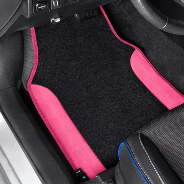Give your car, truck, van, or SUV a fresh and vibrant makeover with our sleek, two-tone faux leather and stylish carpet floor mats. Crafted with precision, these hot pink floor mats are more than just visually appealing; they promise durability and ultimate foot comfort. Whether you’re embarking on a long journey or simply cruising around the town, let your vehicle make a bold statement.
