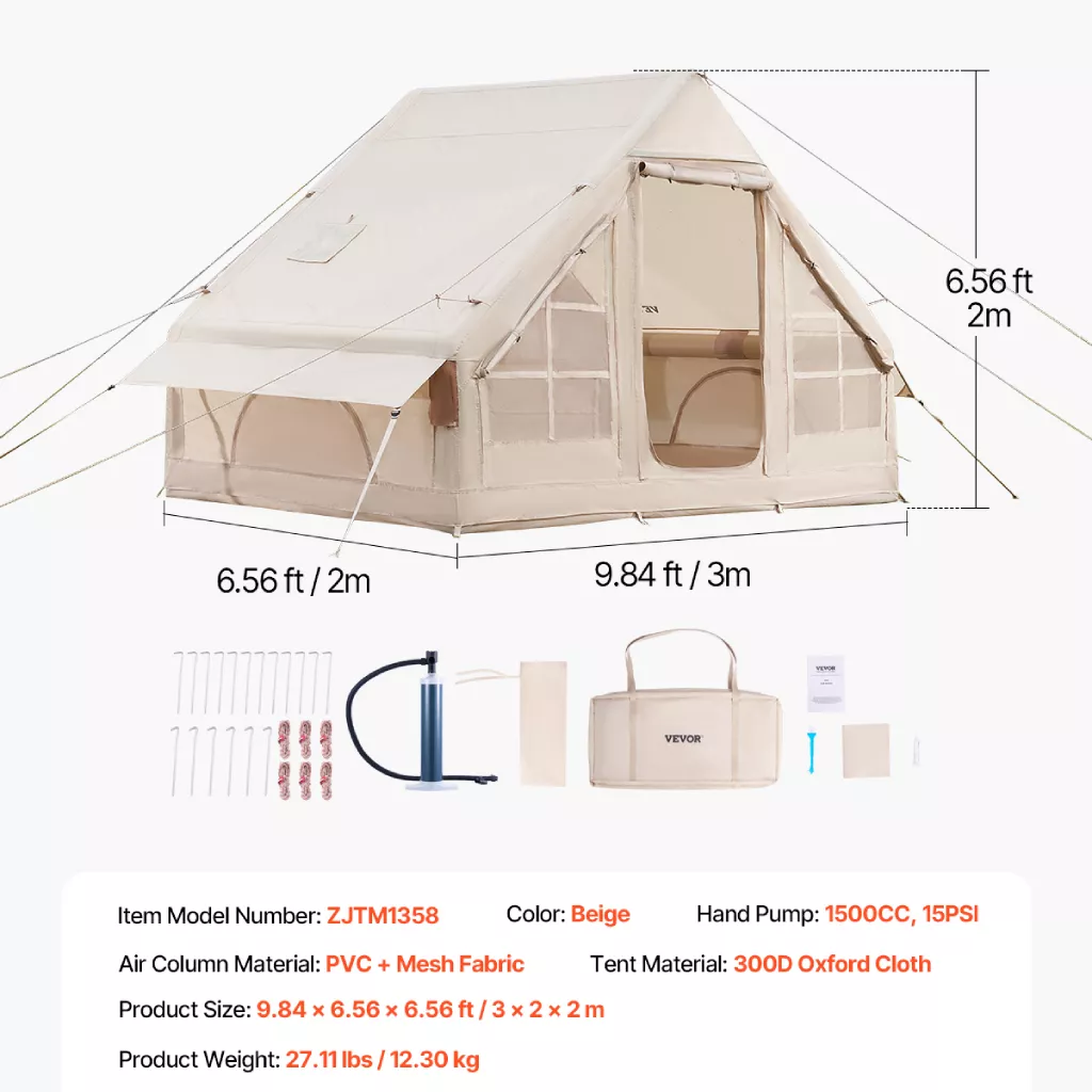 With a spacious 65 square feet of interior space (9.84 x 6.56 x 6.56 ft), this blow-up tent easily fits 3 to 5 people, making it perfect for families, small groups, or even a solo adventurer who loves extra room. It’s crafted from durable 300D Oxford fabric, offering reliable protection against sun, rain, and wind. Whether you’re camping in the woods, setting up at a festival, or enjoying a chilly fall evening, this tent’s weather-resistant build and warmth-ready stove jack have you covered.