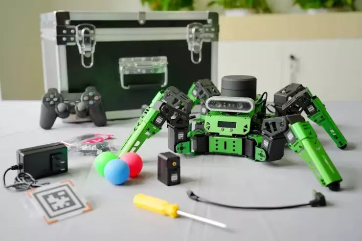 Diving into the world of robotics has been an exhilarating journey, and the JetHexa has been at the heart of this adventure, playing a pivotal role every step of the way. From the moment I unboxed this marvel, the full-metal hard aluminum alloy bracket caught my eye, not just for its sleek appearance but for the promise of durability it held. True enough, after numerous outdoor experiments, from the rough terrains of my rocky backyard to the unpredictable surfaces of local parks, this robot has withstood it all without so much as a dent. It’s not just the robot's frame that impresses; its advanced mobility is a sight to behold. With 18 degrees of freedom, watching the JetHexa navigate complex terrains is like observing a dance of technology and engineering finesse. The level of precision and ease with which it moves is astounding, allowing it to tackle challenges I previously thought impossible for a robot of its size. What sets the JetHexa apart, even more, is its accessibility to enthusiasts of all programming levels. Being able to code in Python, C, C++, and JavaScript opened up a new realm of possibilities for me. It’s like having a canvas where my coding skills can paint endless innovations, from simple movements to complex navigational tasks. This feature alone makes it a treasure trove for anyone keen on diving deep into the world of robotics, offering a unique blend of learning and experimentation. The inclusion of seamless connectivity options further enhances the user experience. Whether I’m using my computer, smartphone, or a handle control, I can connect to the JetHexa through USB, Wi-Fi, or Ethernet with ease. This flexibility ensures that wherever I am, and whatever device I have on hand, I can interact with my robot, making the exploration and learning process continuous and hassle-free.