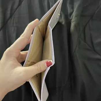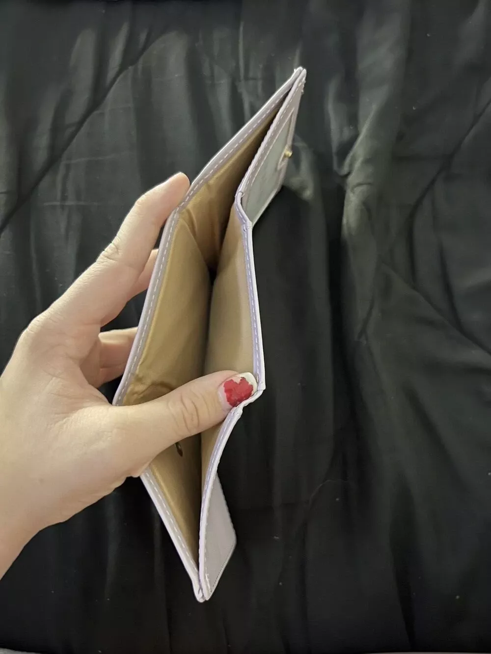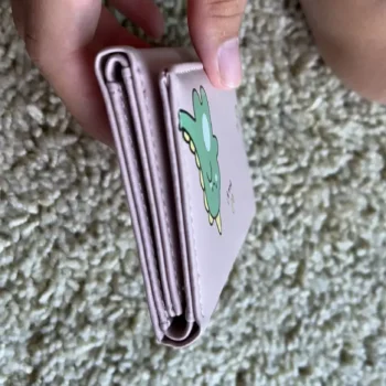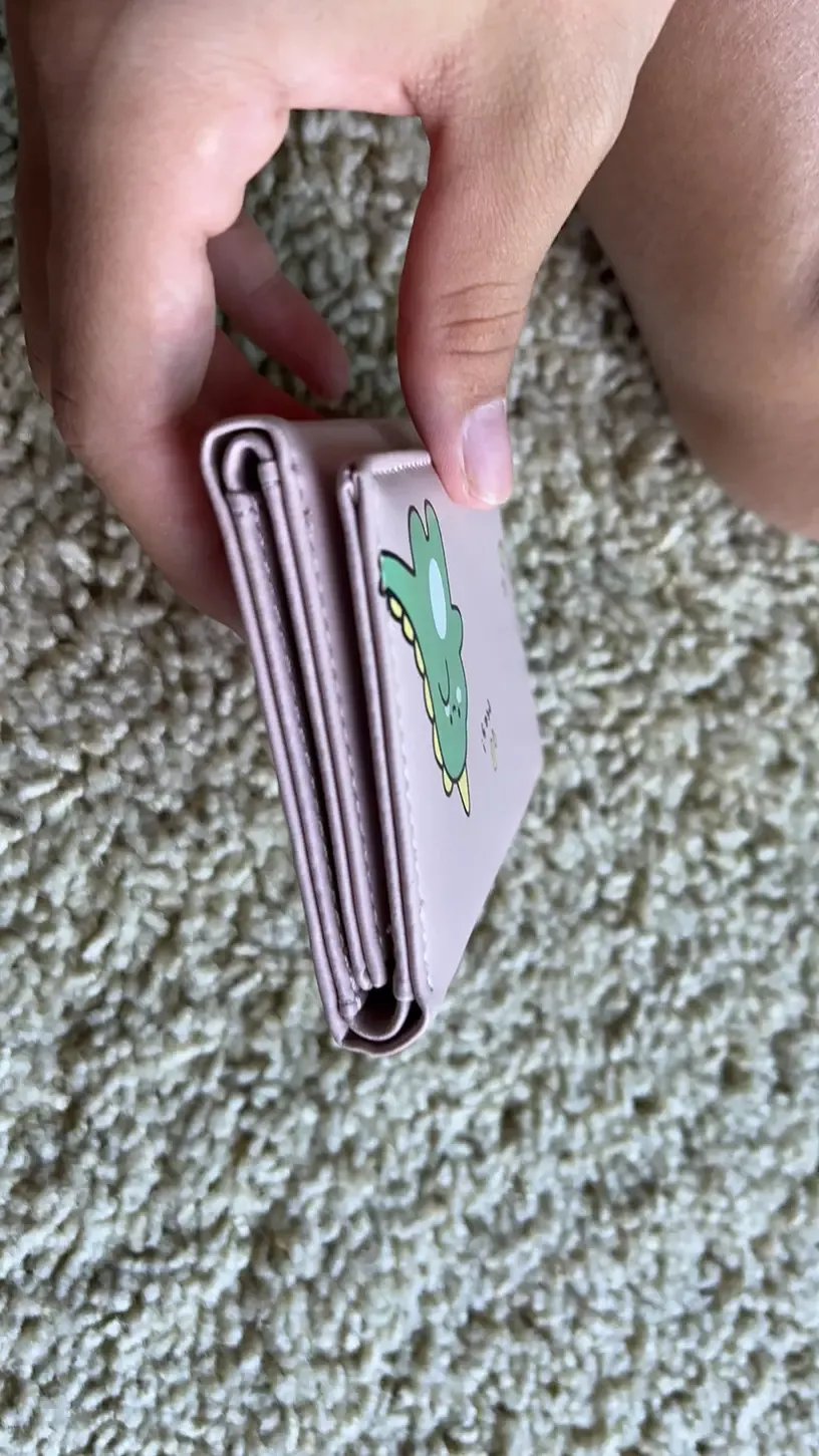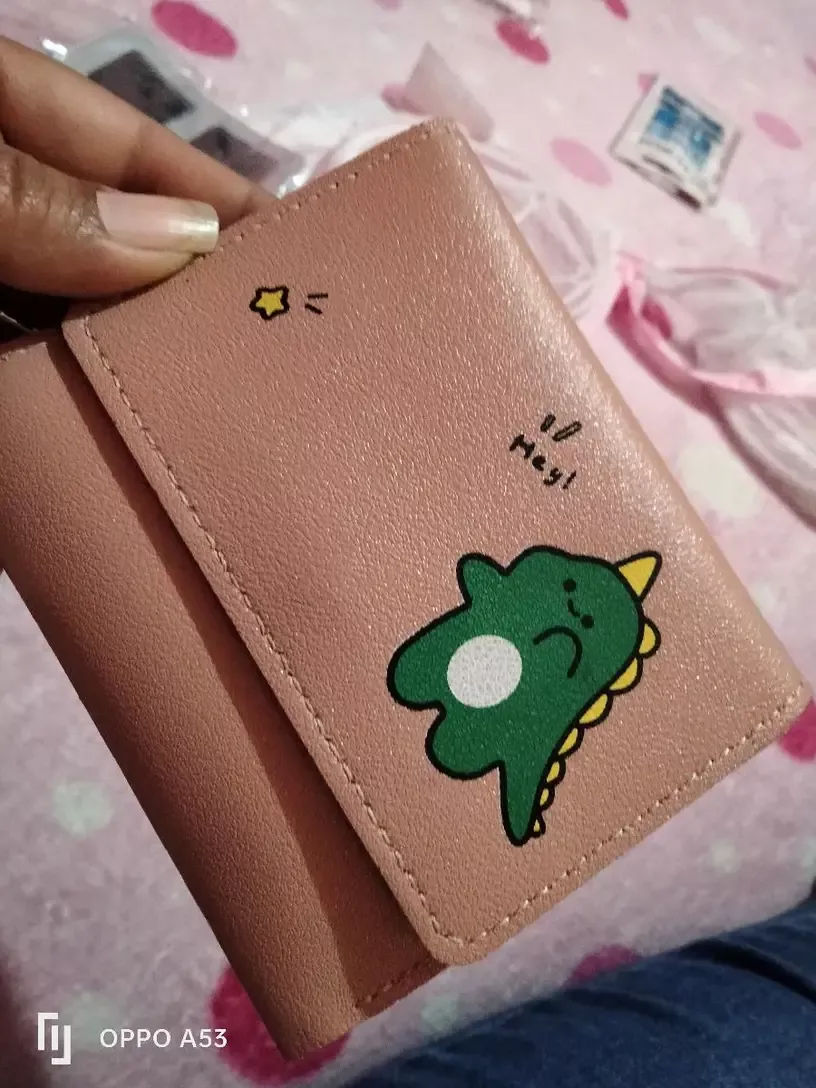 A very cute wallet π«Άπ©· It's exactly what I wanted and what I was looking for! I'm personally not a big fan of chunky wallets so I was looking for something small and cute π©· The color is pretty and the little dinosaur drawing is a pretty decoration. The quality feels about right for the price π©·. I'm truly satisfied with this purchase!