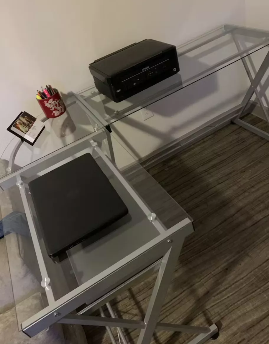 Discover the perfect blend of style and functionality with our Modern L-Shaped Tempered Glass Computer Desk. Designed for the contemporary professional, this exquisite desk brings a sleek, minimalist aesthetic to any room, be it your home office or living room. Its clear glass top and steel frame not only add a touch of sophistication but also promise durability and stability for your work setup.