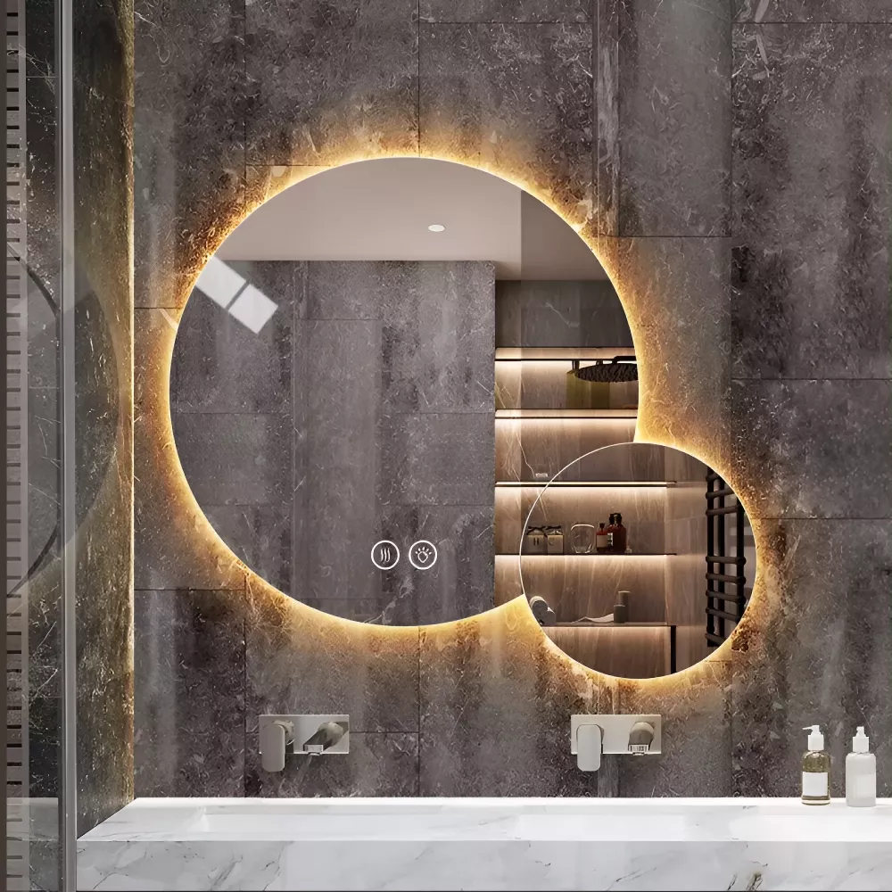 Modern LED Smart Mirror with Touch Switch – Irregular Shape, Frameless Design for Elegant Home Decor