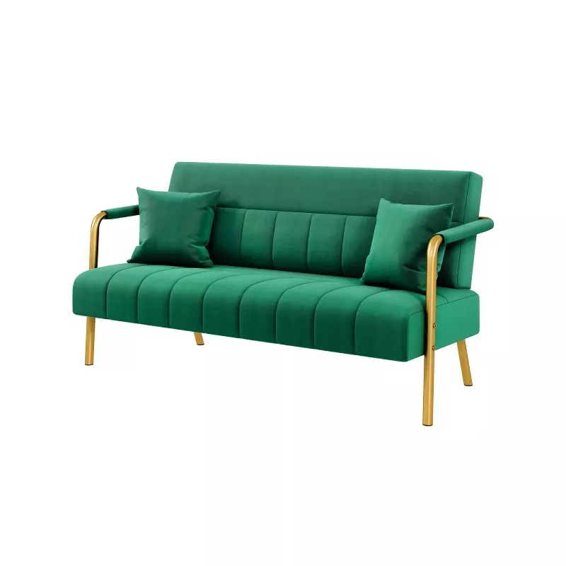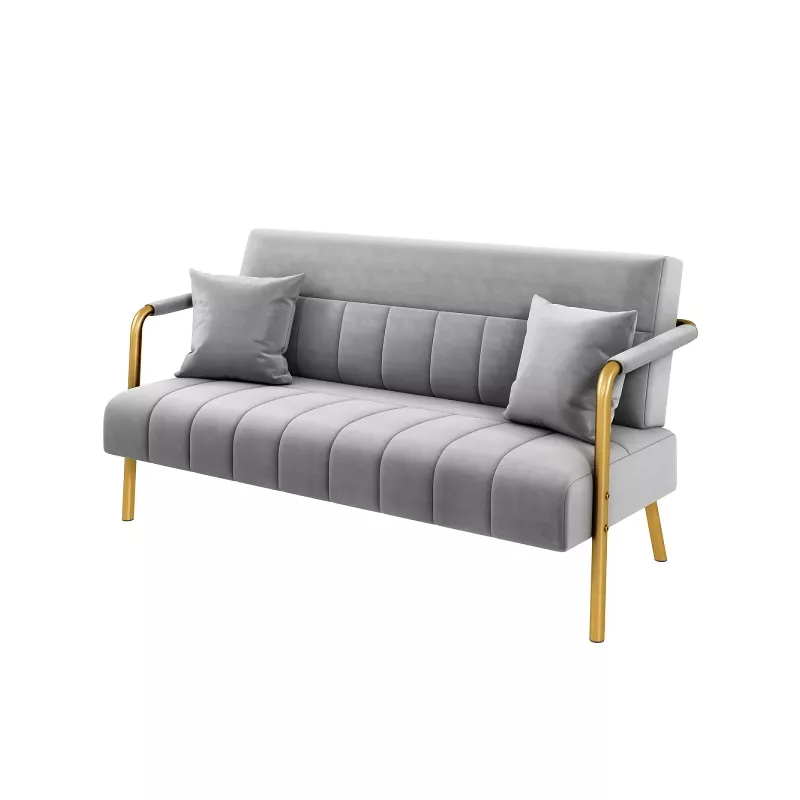 This loveseat isn’t just about looks; it’s also built to last and designed for convenience. The gold-tone metal legs not only add a flair of sophistication but also ensure stability and durability. Cleaning is simplified with removable pillow covers and sufficient ground clearance for easy access by cleaning robots.