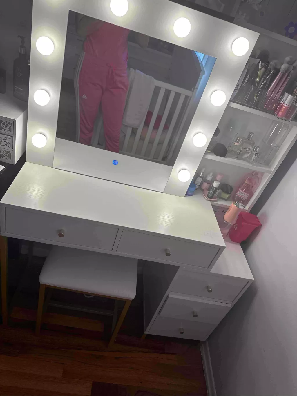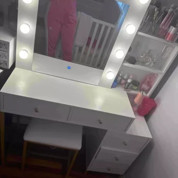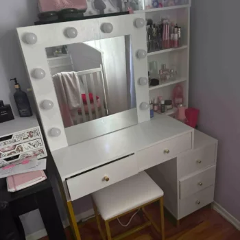 • Five-Drawer Vanity Table: Comes with a large mirror and matching stool, offering a comprehensive solution for all your beauty routines.