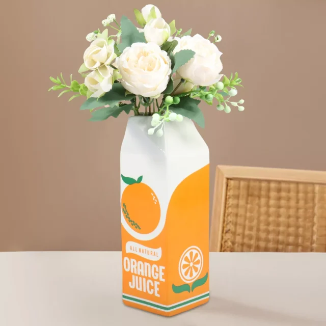 Unlike ordinary vases, this one brings a nostalgic yet stylish twist that instantly livens up your surroundings. Its unique form makes it a conversation starter, while its high-quality ceramic build ensures it stays a favorite piece for years. Whether gifted to a friend or kept for your own décor collection, the Orange Juice Box Vase will add joy and charm to any home.