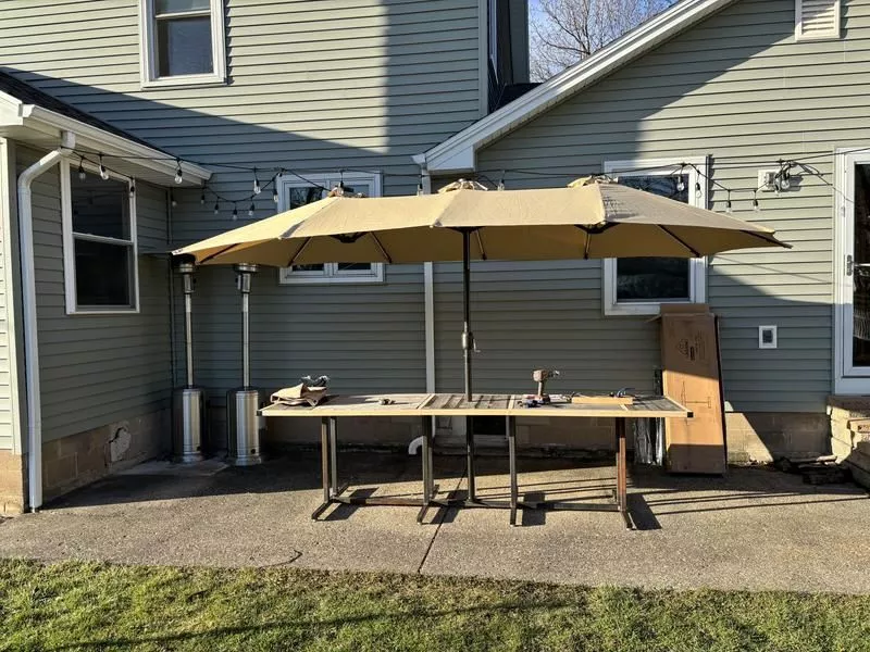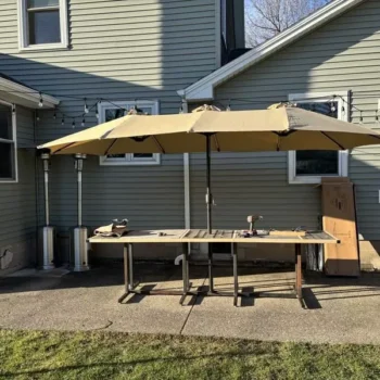 • Double-Sided Design: The 15 ft umbrella boasts a double-sided sun canopy, creating a 133 ft² shaded area, perfect for accommodating multiple people comfortably.