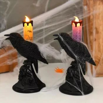 Black Crow Statue with LED Candle Lights