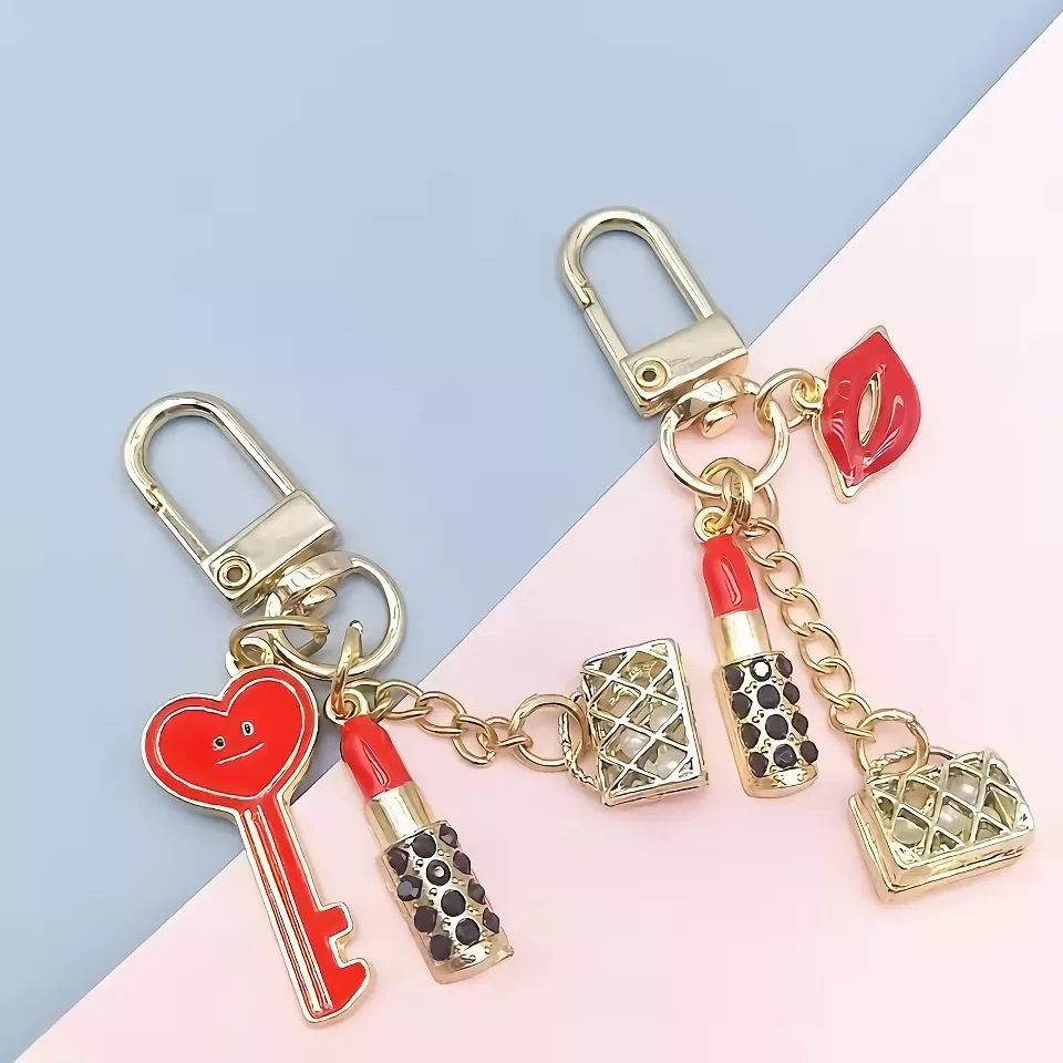 This keychain is adorable, feeling sturdy in hand. Though I haven't had it for long, I'm already taken with its bright red color, sparkling details, and the mix of a lipstick, heart, and bag.