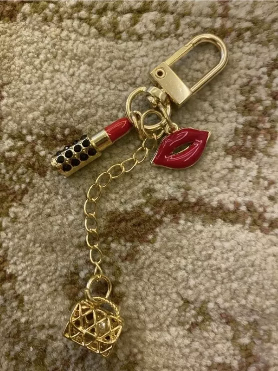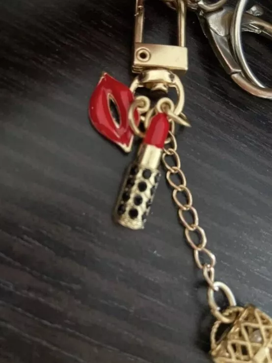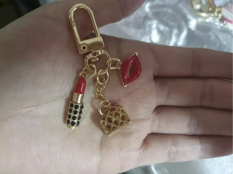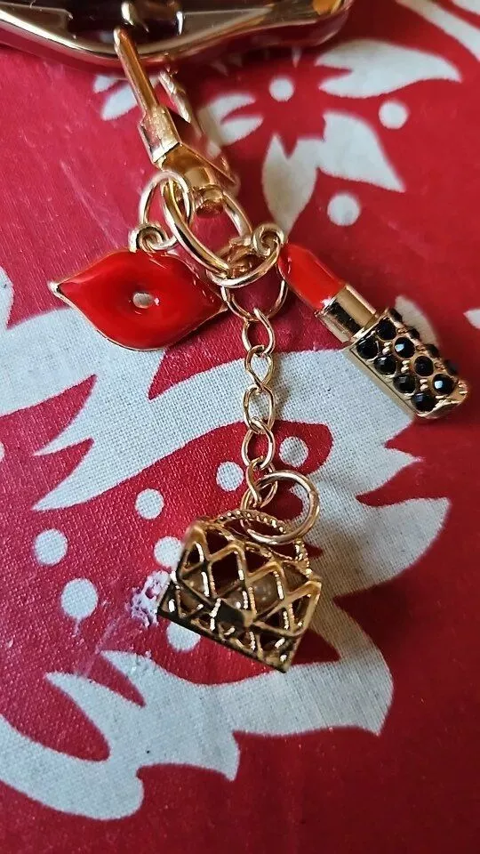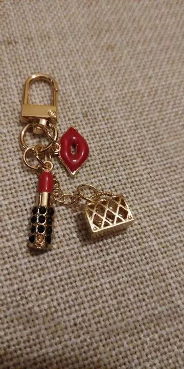 This keychain is adorable, feeling sturdy in hand. Though I haven't had it for long, I'm already taken with its bright red color, sparkling details, and the mix of a lipstick, heart, and bag.