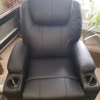 Man, let me tell you about this recliner. It's like stepping into a slice of heaven every time I sink down into it. You know that feeling when you've had a long day and all you want to do is kick back and relax? This totally gets it! First off, the massage function on this bad boy is unreal. It doesn't just vibrate like some cheap knock-off; no sir, it actually kneads your muscles in a way that would make any professionaluse green with envy. And the best part? You can adjust the intensity to suit your needs - whether you're after gentle relaxation or deep tissue relief. But wait, there's more! The heating feature on this thing takes coziness to another level altogether. Imagine sitting in your favorite spot during those cold winter nights with warmth radiating from beneath you... yeah, that’s what I'm talking about! It's like having an invisible blanket wrapped around you at all times. And don’t even get me started on how comfortable this recliner itself is – plush enough to feel luxurious but firm enough for support where needed. Every inch of it screams "sit here and forget about life for a while". Plus, who wouldn't love being able to lean back at just the right angle without straining their neck or back? So if anyone ever asks me why I’m so obsessed with my new piece of furniture – well now they know! Absolutely loving every moment spent in my personal spa-like haven at home thanks to this game-changing recliner.
