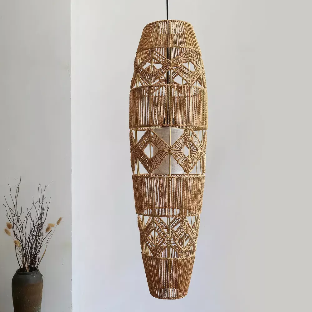 This lamp is more than a light source; it’s a piece of art. The Japanese Wabi-sabi aesthetics celebrate simplicity, natural imperfections, and the transient nature of life, which this lamp embodies perfectly. The hand-knitted rattan and hemp rope add an authentic touch, while the LED bulb included ensures modern efficiency.