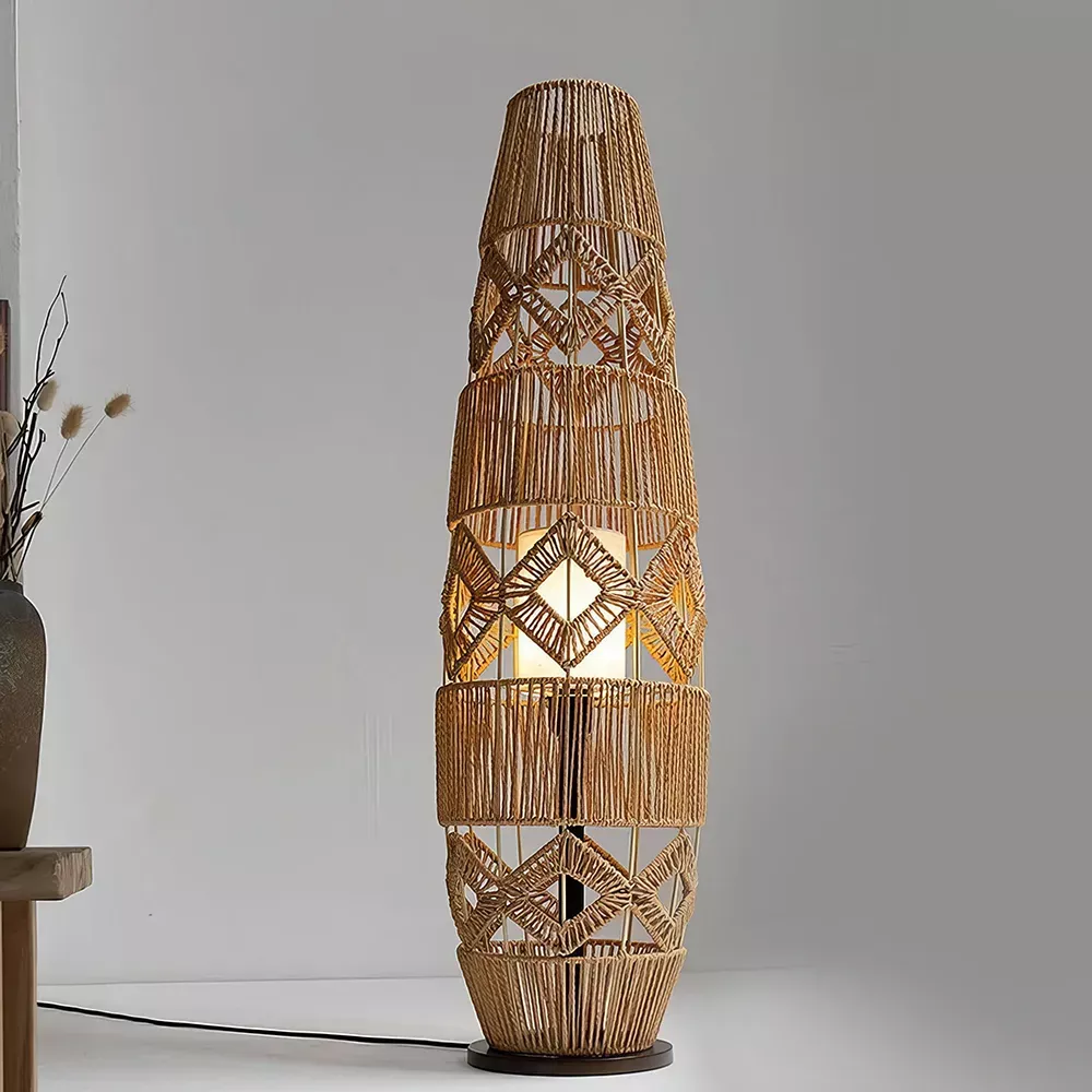 Zen Art Decorative Rattan Weave & Hemp Rope Floor Lamp – Japanese Inspired LED Standing Light